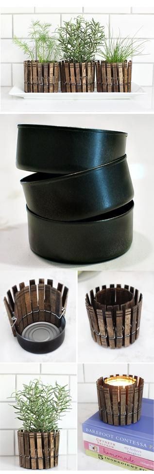 找一個乾淨的鐵製容器,在周遭圍上一圈木夾,便可以當成小盆栽使用